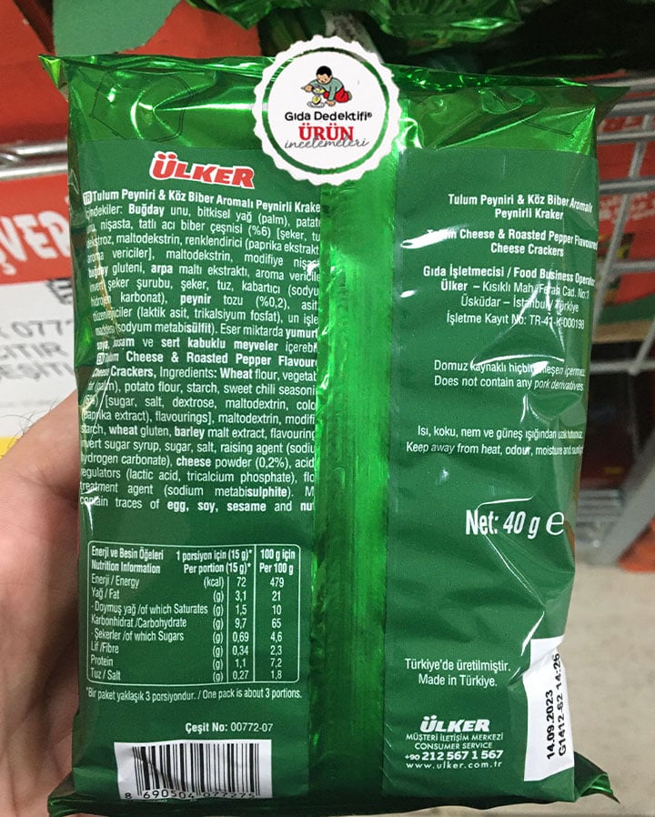 🔎Ülker Çizi Çıtır Atıştırmalık Tulum Peyniri ve Köz Biber Aromalı Peynirli Kraker Besin Değerleri
