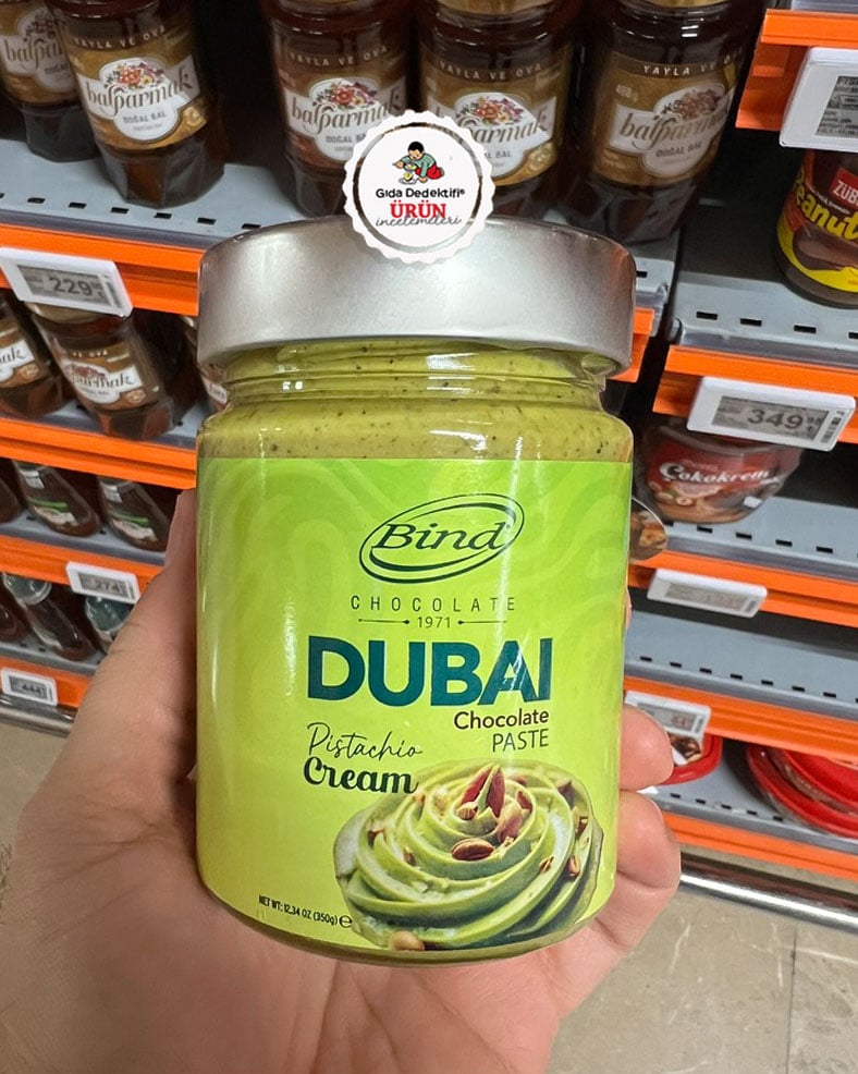 Dubai çikolatası çılgınlığı market raflarında çeşitli ürünlerde karşımıza çıkmaya devam ediyor. Son dönemde rastladığımız birçok ürünün yanında marketlerde Dubai Çikolata kreması ismiyle dikkatimizi çeken krema ürününü inceleyeceğiz. Ürün İstanbul Silivri’de üretim yapan ve Bind Çikolata markasıyla bilinen Tatlı Çikolata Sanayi ve Ticaret A.Ş. firması tarafından üretilerek 350 gr’lık kavanozlarda satışa sunuluyor.