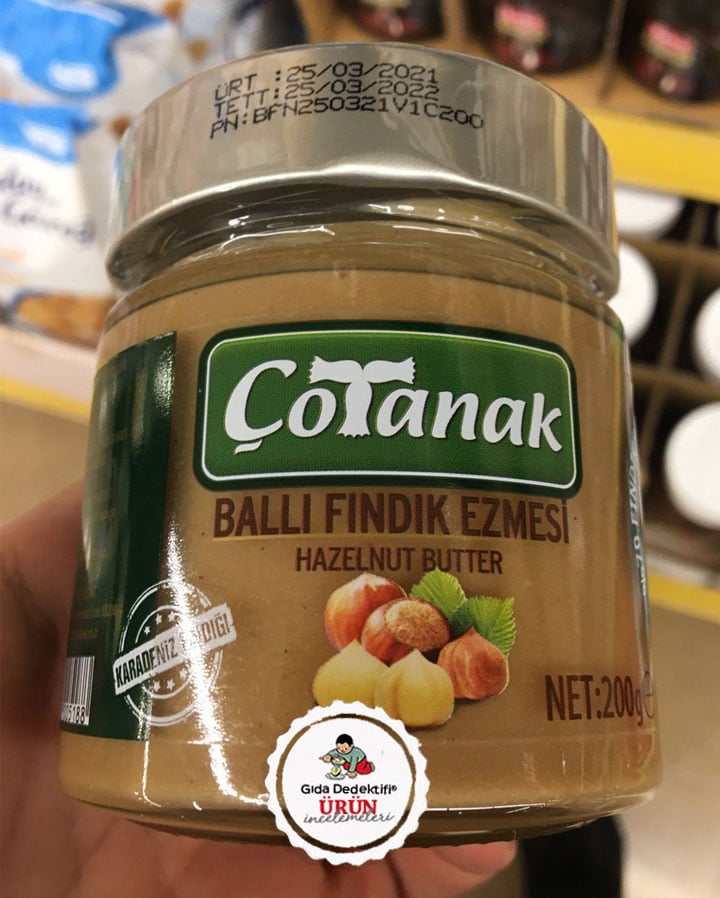 Birkaç yıldır raflarda görmeye başladığımız ve bizim de 2017 yılında incelemesini yaptığımız Çotanak Ballı Fındık Ezmesi’ni güncel içeriğiyle tekrar inceliyoruz. Ürün 200 gr.’lık cam kavanozlarda satılıyor. Ürün üzerinde “%70 fındık, %20 bal, tahin ve süt” ifadeleri özellikle vurgulanırken, ilave edilen bitkisel yağlardan burada bahsedilmiyor. Üründe %70 gibi yüksek bir oranda fındık bulunuyor. Bu da 200 gr.’lık tek kavanozda 140 gr. fındık olduğunu gösteriyor.