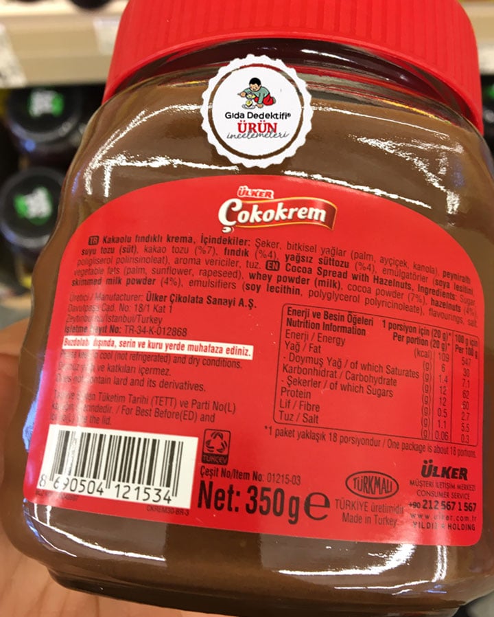 Çok uzun yıllardır raflarda olan ve “En tatlı sabahlar, Çokokrem’le başlar” sloganıyla çocukluğumuzdan bu yana zihinlerimize kazınmış bir ürünü; Ülker Çokokrem Kakaolu Fındık Kreması’nı inceleyeceğiz. Ürün farklı çeşitleri olsa da genellikle 350 gr.’lık cam kavanozlarda satılıyor. Ürünün ayrıca çocuklara yönelik tüp formları ve daha yüksek gramaja sahip plastik paketleri de bulunuyor. Ürün üzerinde az önce bahsettiğimiz sloganın yanı sıra fındık görselleri dikkat çekiyor. Fakat ürün piyasadaki benzer ürünlerin birçoğuna kıyasla çok daha düşük fındık oranına sahiptir. Üründe sadece %4 oranında fındık bulunurken, bu oran 350 gr.’lık tek kavanozda 14 gr. fındık demektir.