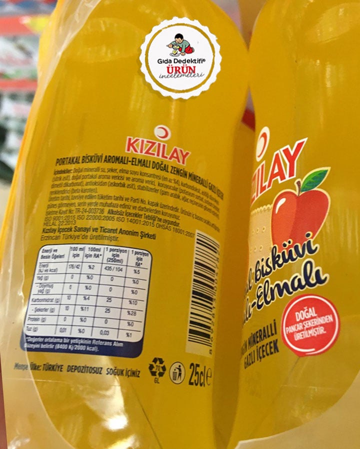🔎Kızılay Portakal ve Bisküvi Aromalı Elmalı Gazlı İçecek Besin Değerleri