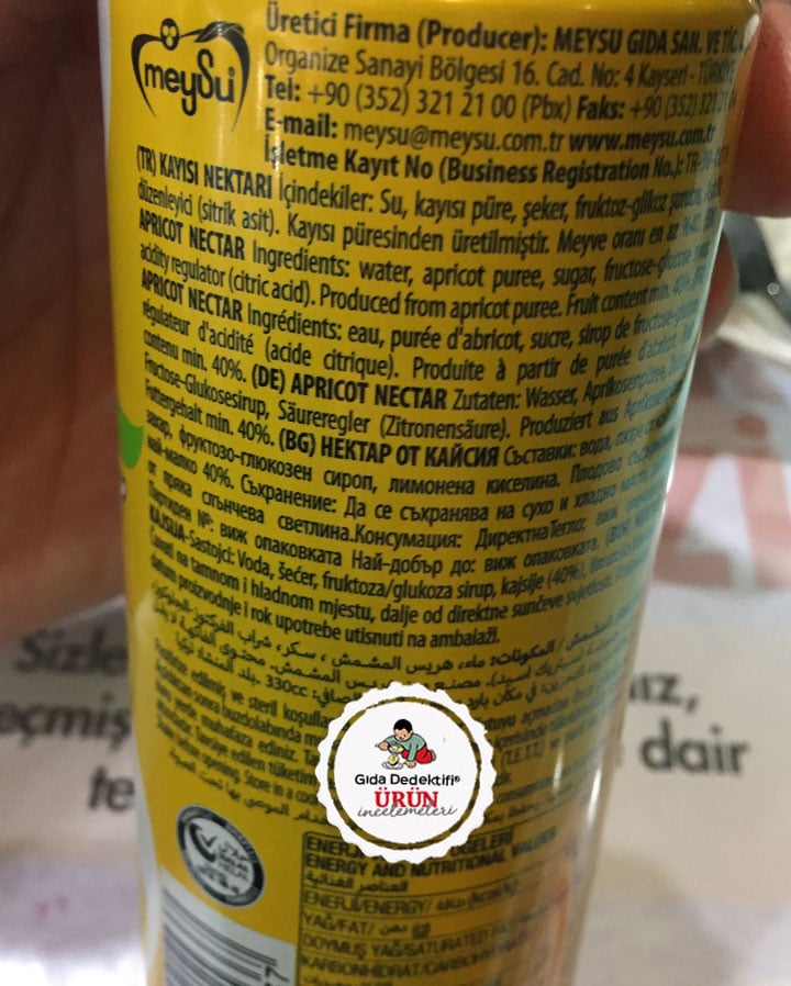 Bu akşam bir belediyeye ait sosyal tesiste karşılaştığımız bu ürünü gün içinde yayınlamak istedik. Öyle ki, bu ürün Meyve Nektarı kategorisinde yer alıyor ve içeriğinde %40 oranında kayısı püresi bulunuyor. Üründe meyve suyu konsantresi bulunmadığını, meyve içeriğinin kayısı püresinden geldiğini belirtelim.