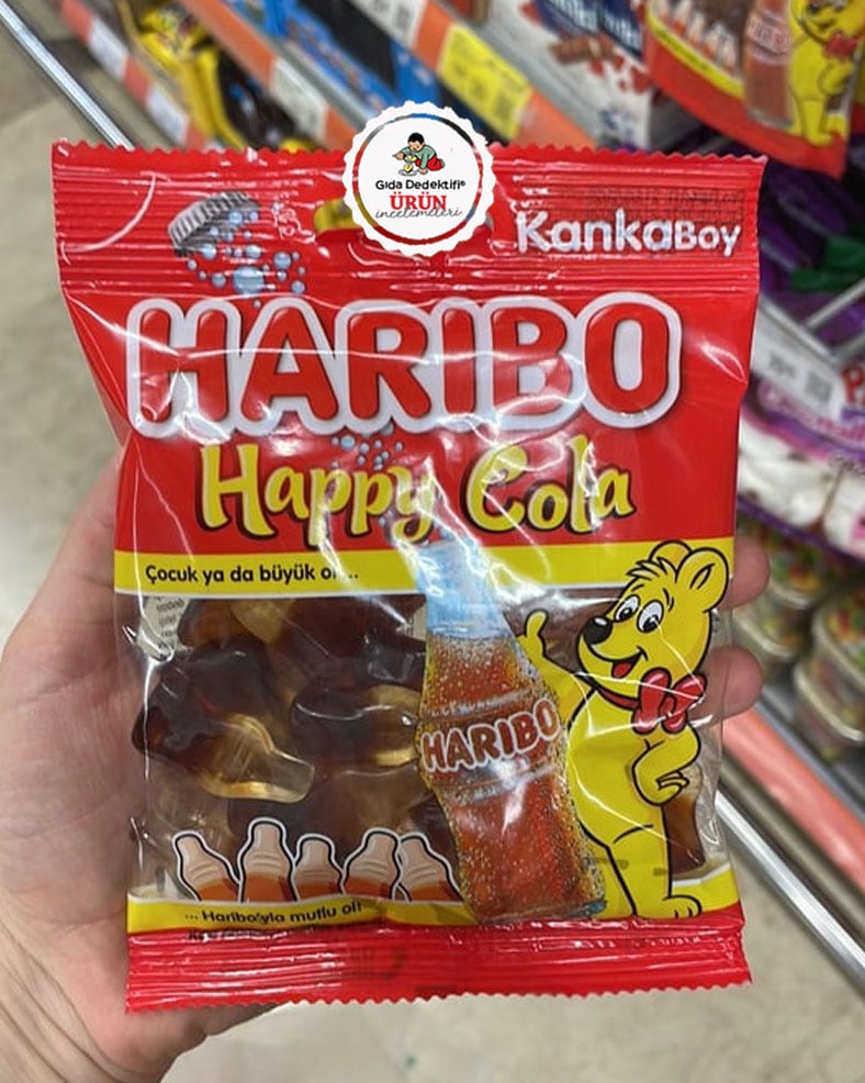 Son günlerde Hollanda’daki uyuşturucu skandalıyla gündeme gelen Haribo markasının Türkiye’de üreterek satışa sunduğu Happy Cola ürününü inceleyeceğiz. 80 gr’lık ambalajlarda satılan ürün Arnavutköy’deki Haribo Şekerleme Sanayi ve Ticaret Limited Şirketi’ne ait tesislerinde üretiliyor.