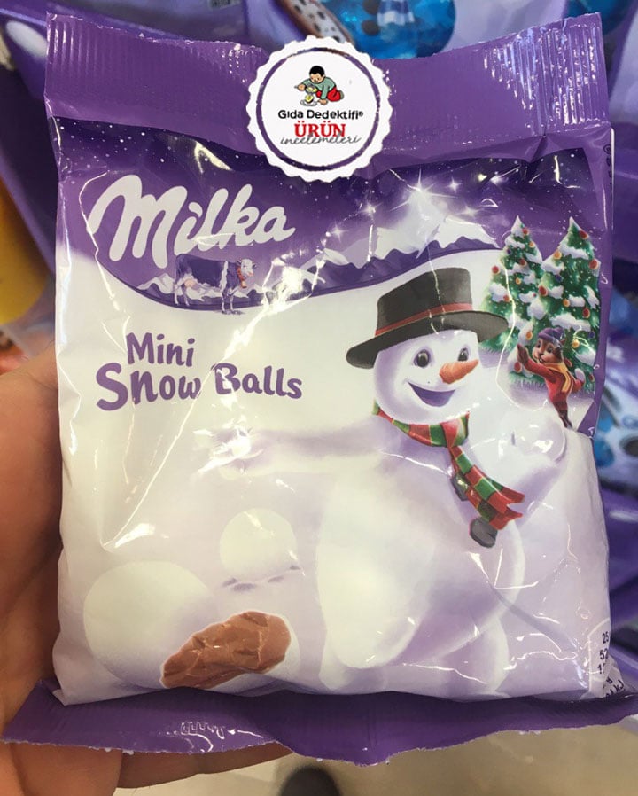 Kış konseptiyle üretilerek ülkemize Polonya’dan ithal edilen Milka Mini Snowball ürününü inceleyeceğiz. Ürün bir çikolata değil fakat “sütlü çikolata dolgulu şekerleme” sınıfında yer alıyor. 100 gr.’lık paketlerde içeriğinde yaklaşık 24 tane snowball yani top şekerleme bulunuyor. 6 tane top şekerleme tek porsiyon olarak kabul ediliyor – ki bu da tek pakette 4 porsiyon ürün bulunduğunu gösteriyor.