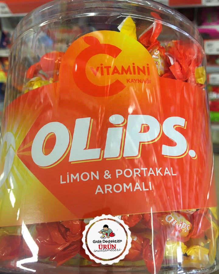 Çok uzun yıllardır piyasada yer alan fakat Mondelez International firmasına ait Kent Gıda tarafından üretilen Olips Limon ve Portakal aromalı bonbon şekerlemeyi inceleyeceğiz. Ürünü 462 gr.’lık paketi üzerinden etiket verileriyle inceliyoruz. Ürünün tek adedinin yaklaşık 2 grama denk geldiğini fakat pakette adet miktarının yazmadığını söyleyelim.