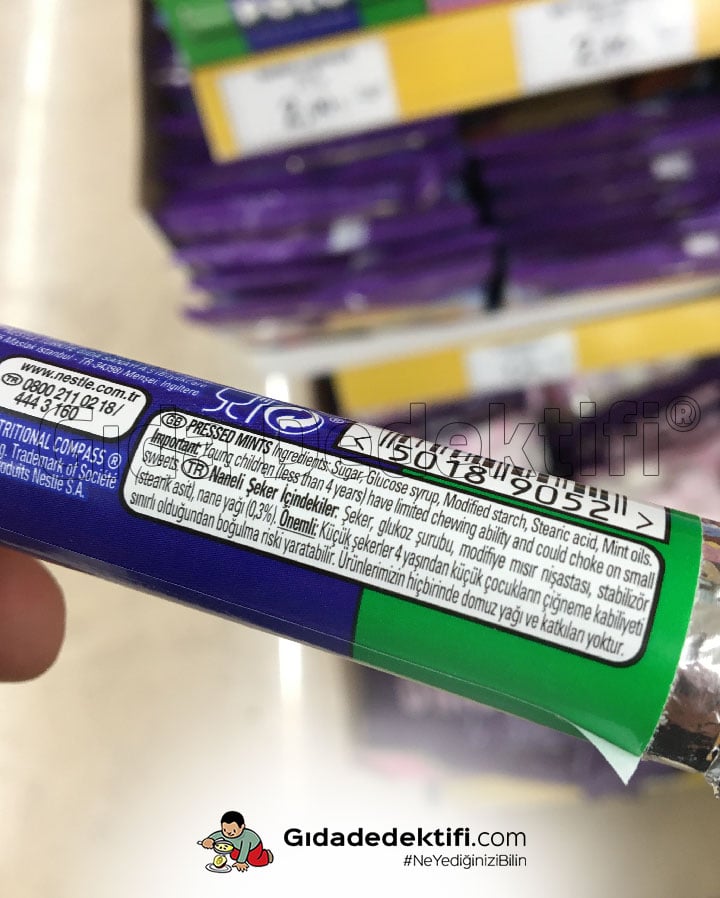 🔍İçindekiler: Şeker, Glikoz şurubu, Modifiye Mısır Nişastası, Stabilizör (Stearik asit), Nane yağı (%0,3)