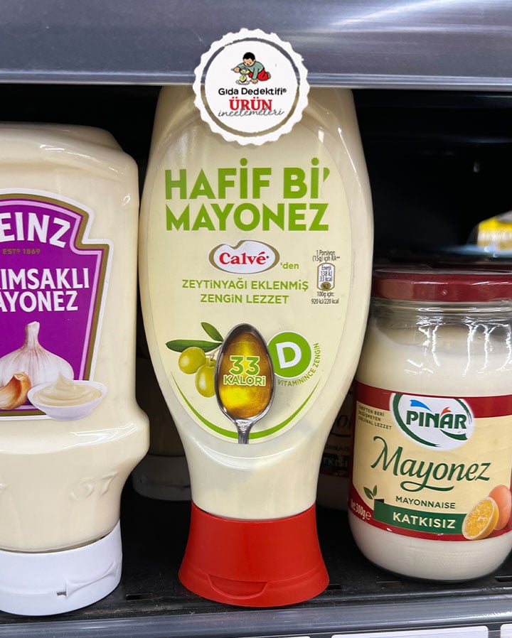 Marketlerdeki ketçap ve mayonez raflarında artık çok daha farklı çeşitler görmeye başladık. Bugün bunlardan birini Calvé Hafif Bi’ Mayonez adıyla satılan Zeytinyağı Eklenmiş Mayonez ürününü inceleyeceğiz. Ürünün isminin “zeytinyağlı” değil “zeytinyağı eklenmiş” ifadesiyle vurgulanması tüketiciyi aldatmaktan uzak, bilgilendirici ve açık bir durum olmuş. Ürün 355 gr’lık paketlerde satılıyor.