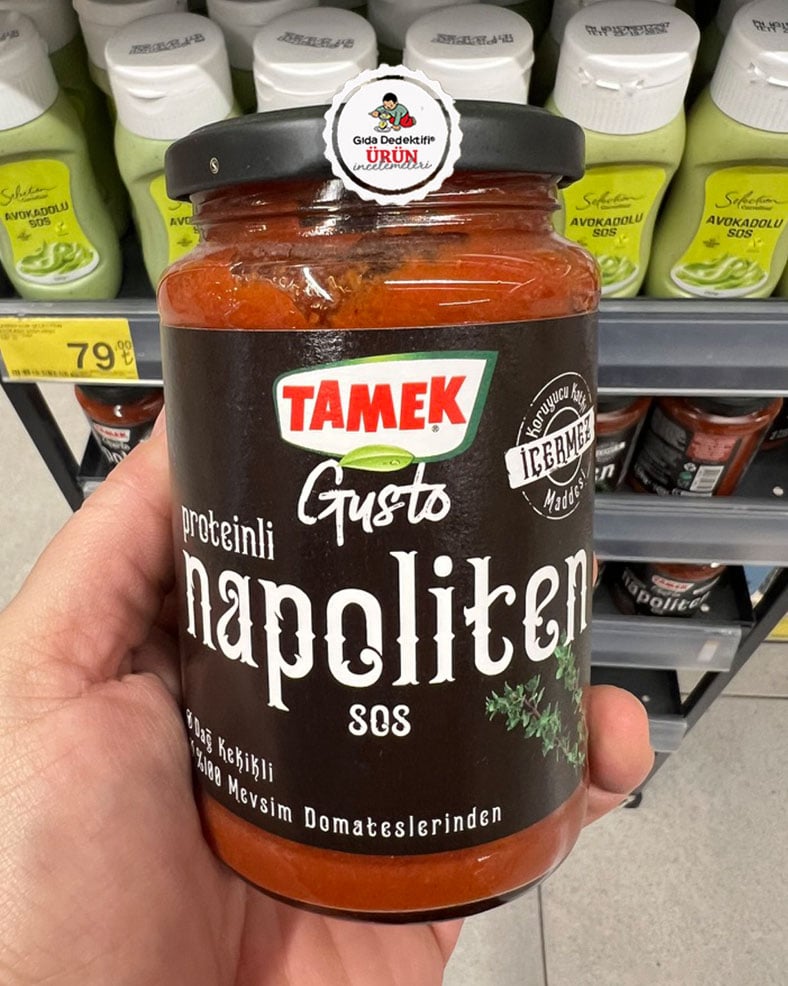 Bugün market raflarında Tamek markasıyla yerini alan ve “Gusto” serisine ait olduğu anlaşılan bir makarna sosunu inceleyeceğiz: Tamek Gusto Proteinli Napoliten Sos. Ürün, 350 gramlık cam kavanozda satışa sunuluyor ve ambalajının ön yüzünde dağ kekiği ile mevsim domateslerinden yapıldığına dair vurgular dikkat çekiyor. Ayrıca “Koruyucu İçermez” ve ürün adında da belirtildiği gibi “Proteinli” olduğu ifadeleri de tüketicilere sunulmuş. Ürünün Tamek Grup Gıda Üretim A.Ş. tarafından Bursa Karacabey’deki tesislerde üretildiği bilgisi de ambalaj üzerinde yer alıyor.