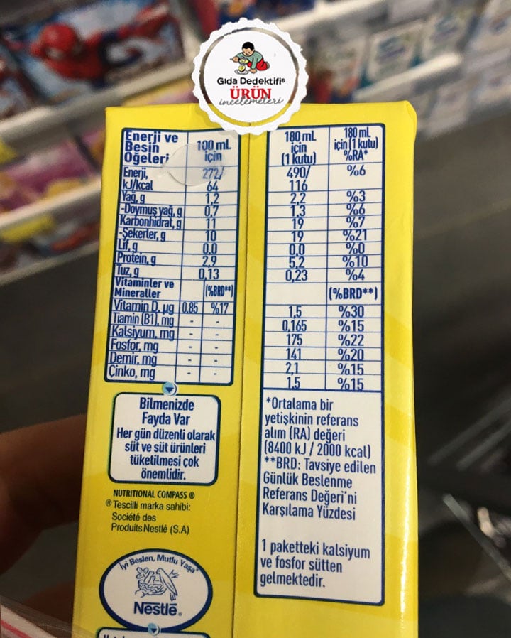 📌Not: Besin Değerleri tek kutu (180 ml) ürün için verilmiştir.