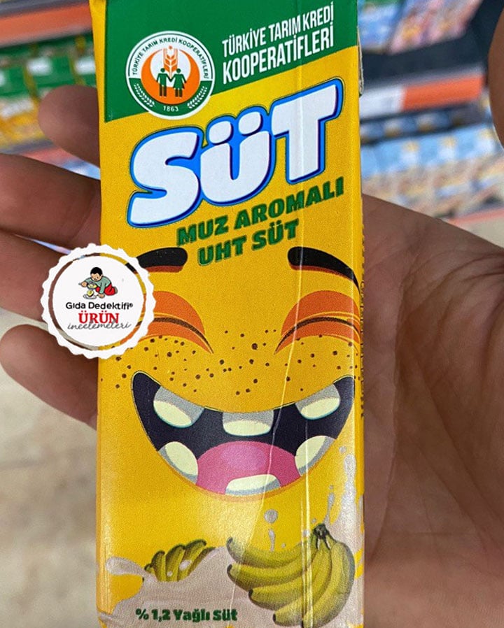 Son dönemde Türkiye Cumhuriyeti Cumhurbaşkanı tarafından alışveriş yapılması önerilen Tarım Kredi Kooperatifleri markalı ürünleri Tarım Kredi marketlerinde inceledik. Paketli endüstriyel ürünlerin çoğunluğunun fason üretim modeliyle kooperatif dışındaki firmalar tarafından üretildiğini, tüketiciye de etiket üzerinden üretici firma bilgisi beyan edilmediğini yerinde tespit ettik. Bu arada neden fotoğraf çektiğimiz soruldu “gizli bir bilgi mi var?” diyerek tüketici hakkımızı kullandığımızı belirttik. İlk olarak 200 ml’lik pipetli kutularda çocukları çeken tasarımlarıyla Tarım Kredi Kooperatifleri Muz Aromalı Süt ürününü inceleyeceğiz.