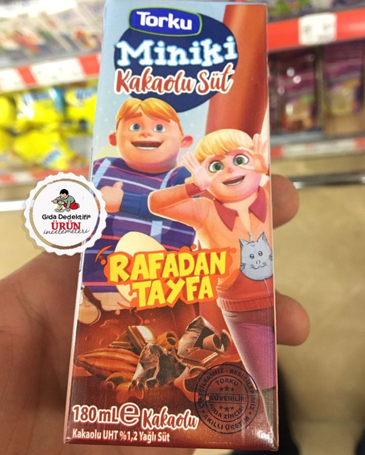 Üzerinde çizgi film görselleriyle özellikle çocuklara yönelik pazarlama ve satış politikası yürüten kakaolu ve meyveli sütlerden bugün Torku Kakaolu Süt ürününü inceliyoruz. Ürün 180 ml.’lik pipetli kutularda satılıyor ve ürün üzerinde Rafadan Tayfa çizgi filmine ait görseller yer alıyor.