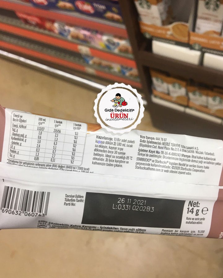 Bir süre önce marketlerde satışa çıkan Starbucks markalı toz kahve karışımlarını inceleyeceğiz. Ürünler Migros’ta özel Starbucks reyonlarında karşımıza çıktı. Reyonlarda “Starbucks kahvesi evinize geliyor” ve “Yeni Starbucks Premium Kahve Karışımlarını deneyin” ifadeleri yer alıyor. İlginç olan ürünler Starbucks markasıyla satılmasına rağmen Nescafé 3’ü1 Arada ürünleriyle bilinen Nestlé Türkiye tarafından fason olarak üretiliyor. Yani aslında Nescafé’nin üreticisi tarafından üretilen bu ürünler Starbucks markasıyla “%100 Arabica kahvelerini sütle buluşturduk” sloganıyla satılıyor.
