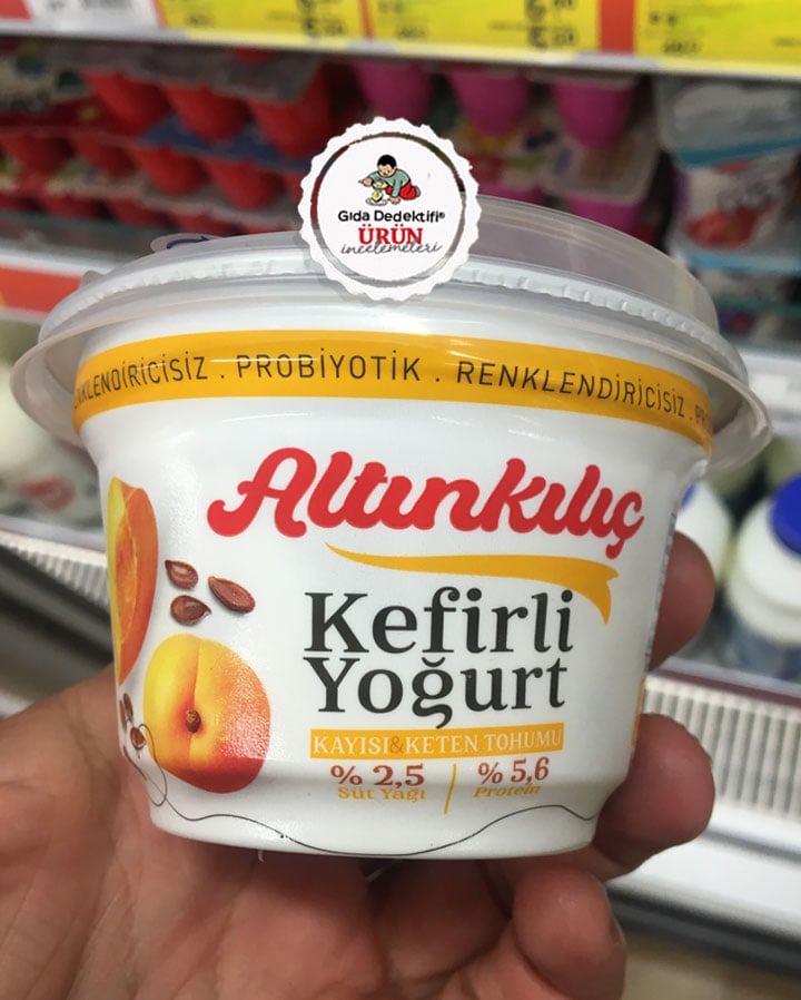 Daha önce sade çeşidini ve farklı ürünlerini incelediğimiz, ambalajında bazı değişikliklere giden Altınkılıç markalı Kefirli Kayısılı ve Keten Tohumlu Yoğurt ürününü inceliyoruz. Ürün 150 gr.’lık paketlerde satılıyor. Ürünün kapağında yer alan kaşık sayesinde herhangi bir zaman dilediğinizde tüketebiliyorsunuz. Ürün ambalajında kayısı ve keten tohumu görselleri dikkat çekerken, %2,5 süt yağı ve %5,6 protein vurgusu da yer alıyor.