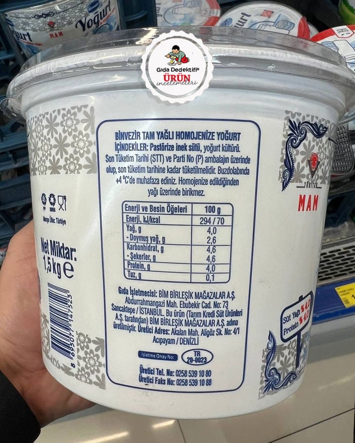 Sizler tarafından çokça sorulan ve geçtiğimiz hafta Bim mağazalarında satışa sunulan Binvezir Tam Yağlı Yoğurt ürününü inceleyeceğiz. 1,5 kiloluk ambalajlarda satışa sunulan üründe %4 süt yağı ve %4 süt proteini bulunuyor. Fakat ürünü farklı kılan özelliği sadece bu değil. Ürün Tübitak MAM logosuyla ve “bu toprakların mayası” ifadeleriyle satılıyor. Üründe Tübitak MAM tarafından 2009 yılında geliştirilmeye başlanan ve 2014 yılında patenti alınan uzun ömürlü yerli maya kullanılıyor.